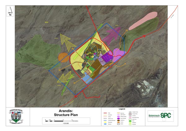 A Structure Plan or Integrated Land Use Plan is a tool for guiding development within a town or a region for a period of time being 15, 20 or 30 years. Structure Plans are not a statutory document and can be adapted if and when required. The plan is to be transparently prepared in close consultation with Local Authority and the community. The aim of the plan is to guide urban development over a long term while also informing the public and investors of the vision for the town.